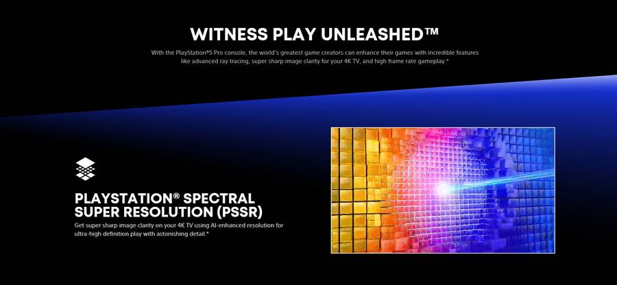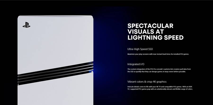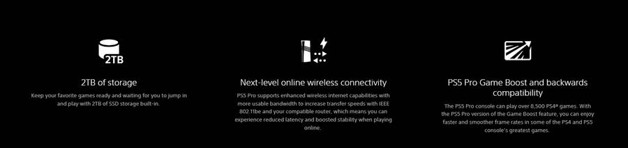 With the PlayStation 5 Pro, enjoy advanced ray tracing, sharp 4K clarity, and high frame rate gameplay. Plus, with 2TB SSD storage, your favorite games are always ready for your next adventure with the most impressive visuals on PlayStation®.