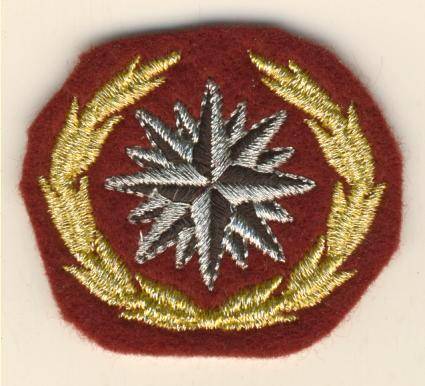 Gold lurex, silver lurex and black embroidered on maroon. Can be used as a filler.