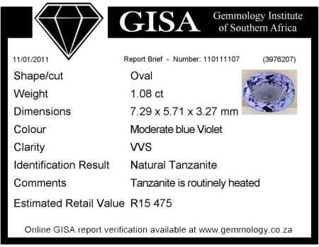 You are bidding on a laboratory certified and verified natural Tanzanite. It is an absolute beauty with no visible inclusions or imperfections. It would look stunning if set in jewelery or the like. This beautiful stone retails in Large Retail stores for more than R15 475 !!!! GISA Original Certificate with the value is attached. This is a credible international certificate which is held in high regard. We will start this auction at R1 No Reserve !!!!!
