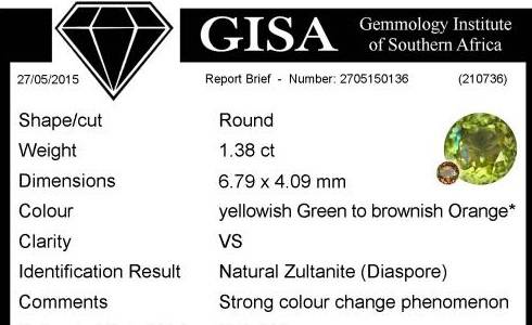 ZULTANITE is extremely difficult to come by. Mined in Turkey. Changing colour from from Yellowish Green during the day, to Reddish Brown in the evening