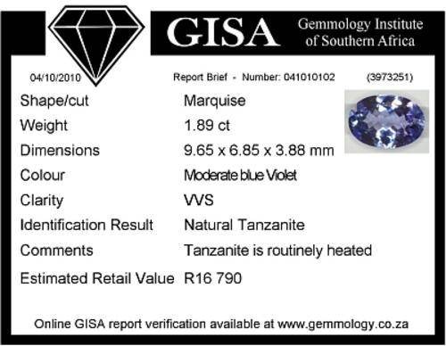 1.89ct Tanzanite - Bluish Violet - VVS - LAB CERTIFED - R1 NO RESERVE !!!!!!!!