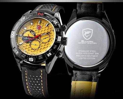 SHARK F1 YELLOW COMB DIAL CHRONOGRAPH SWISS MOVEMENT WATCH