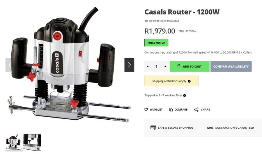 1200 W (1,2 KW) CASALS WOOD WORKING ROUTER / TRIMMER.