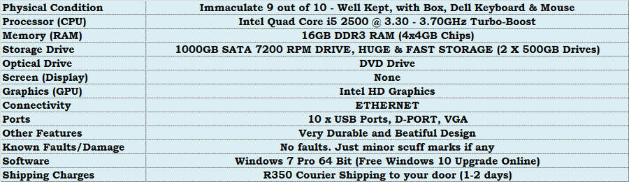 *16GB Ram + 1000GB HDD Super Spec PC with Box* Dell Optiplex 990 Quad Core i5, Dell Keyboard & Mouse