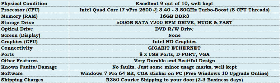 *16GB RAM* Lenovo Thinkcentre M91P Quad Core i7, Windows 7 Pro 64 Bit Licensed