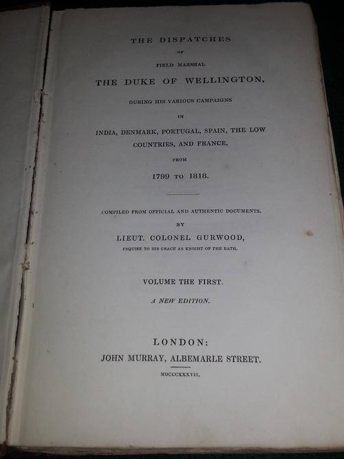 THE DISPATCHES OF FIELD MARSHAL "THE DUKE OF WELLINGTON" DURING HIS VARIOUS CAMPAIGNS IN INDIA, DENMARK, PORTUGAL, SPAIN, THE LOW COUNTRIES & FRANCE.
