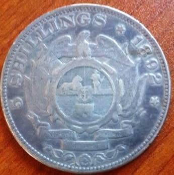 **1892 Z.A.R FIVE SHILLINGS 5/- DOUBLE SHAFT**MINTAGE 4327**UNC VALUE R100 000**CONDITION AS SCAN**