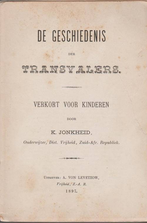 K. JONKHEID, Ouderwijzer, Dist. Vrijheid, Zuid-Afri, Republiek