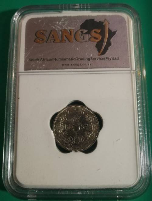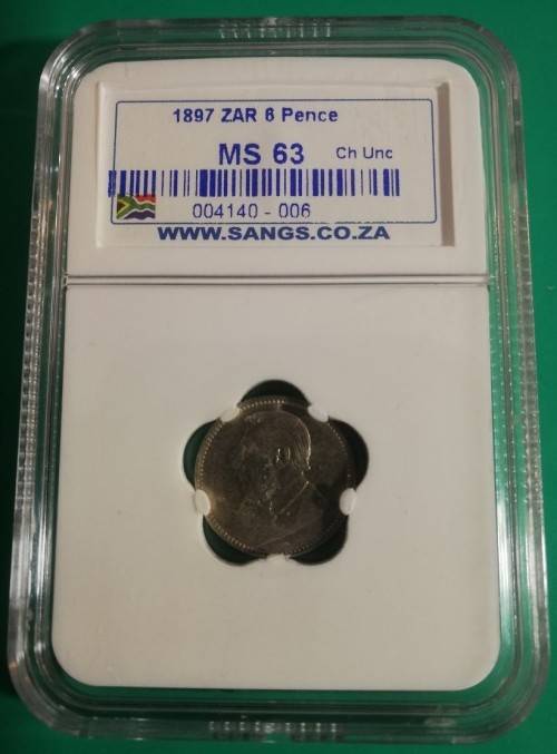 *** 1897 - ZAR 6 PENCE - SANGS GRADED MS63 - BOOK VALUE IN UNC R2000 ***