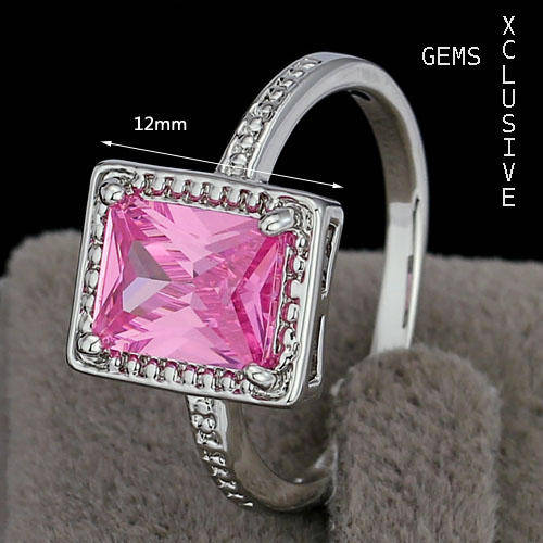 ** 18K WHITE GOLD PLATED SIMULATED PINK TOPAZ LADIES RING