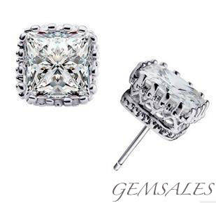 ***18K WHITE GOLD PLATED SQUARE CROWN AAA+ CUBIC ZIRCONI DIAMOND EARRINGS ***