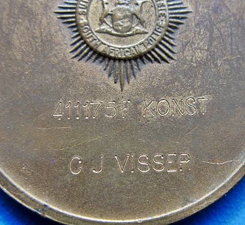 ## 1913-1988 SA Police 75 Year Medal ** 411175F Konst. C.J. Visser ##