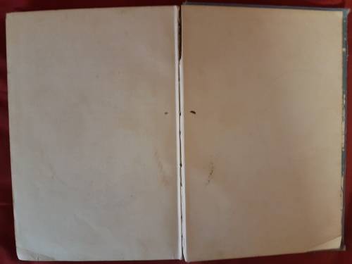 Condition: Both front & back covers has wear, corners bumped, top & bottom of spine has wear, hinges starting to crack, 2 faint glass ring marks to first 2 blank pages. very mild spotting, no foxing evident, back cover has small insect hole, no loose pages, binding still good, o/a a fair copy.