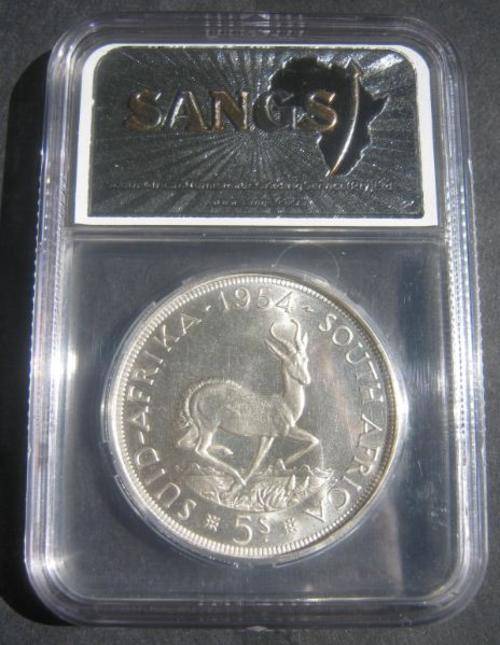 *** 1954 - UNION OF SA 5 SHILLING - PROOF - SANGS GRADED PF 62 ***