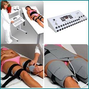 This new series of multi-program electro muscle stimulation and cellulite heat wraps allows the operator to select a program designed to tone and firm your specific body requirements. This machine has 24 Faradic Electro pads, 1 body and 2 leg cellulite heat wraps. It has an adjustable timer, multi programs for e.g. standard 45 minutes, toning 30 minutes, fast slim 15 minutes, lymph drainage 45 minutes, relaxation 45 minutes, abdominal 30 minutes, thighs and hips 45 minutes, facial 15 minutes and bust 45 minutes.