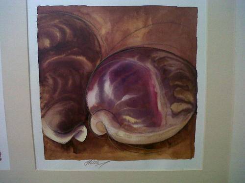 Her style has changed, from initially only working in acrylic ink on watercolour paper, to large canvass paintings in acrylic applied with pallet knife.