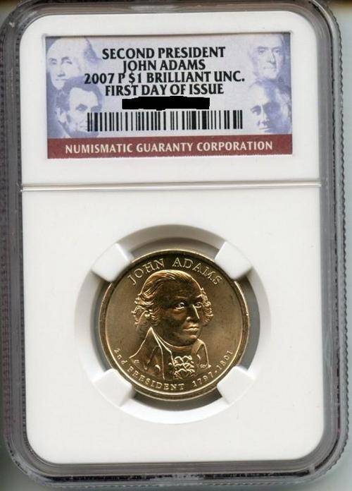 *** 2007 - JOHN ADAMS - $1 BRILLIANT UNC - NGC GRADED - FIRST DAY OF ISSUE ***