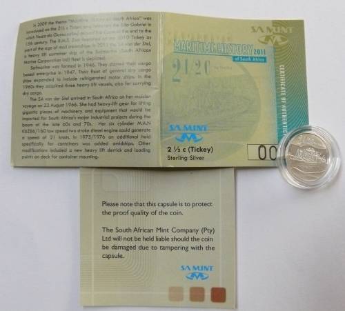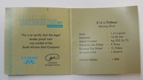 ** 2011 Proof Sterling SILVER Tickey - Maritime History of S A with COA ** - Mintage 571