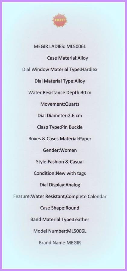 ***2015 MEGIR LeatherBlack Belt Luxury Date Ladies Watches Top Brand* ML5006L