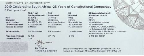 *#* 2019 Celebrating South Africa 25Yrs Constitution Democracy Proof 8 Coin Set *#*