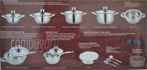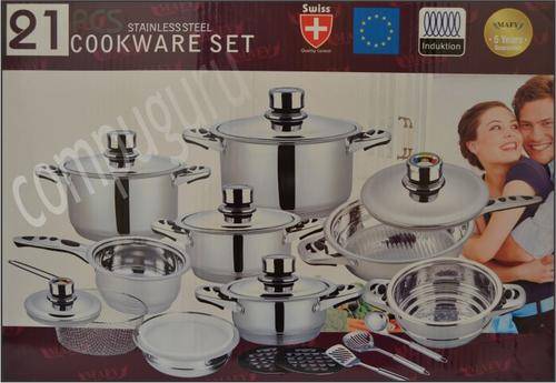 21 Piece Swiss Precision Stainless Steel 18/10 Cookware Set with 7 layer capsuled Bottom and Thermostat lids