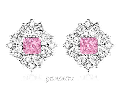 .25ct PINK TOPAZ CZ STUD EARRINGS IN CLUSTER SETTING S925 *10mm*