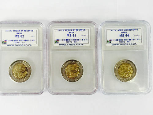***3 COIN SET*** 2011 SOUTH AFRICAN RESERVE BANK R5 COLLECTION