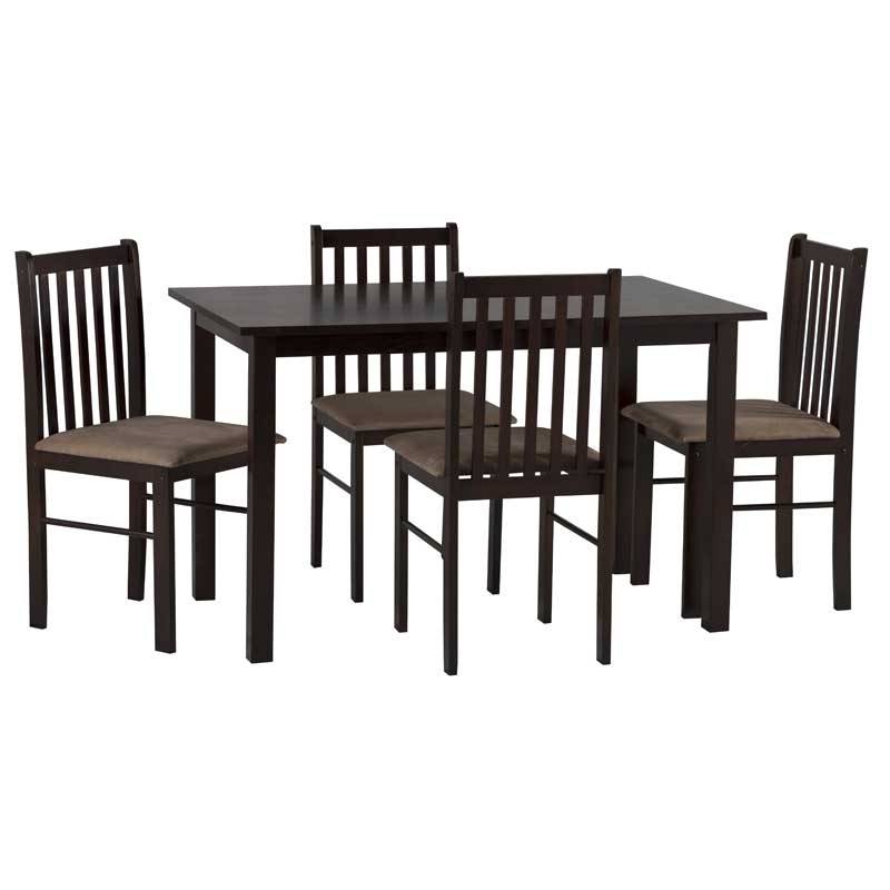 Polo Dining Set: Comfortably seats a family of four persons. Made in a high quality dark wood finish, and matching chairs to complete a look of elegance. Chairs are finished in suede, with a sturdy and solid design. This is the best in it's range.