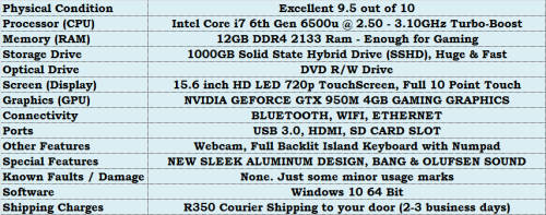 *4GB GTX Graphics + Touchscreen* HP Envy 15 Touch Core i7 6th Gen, 12GB DDR4, 1000GB SSHD, Win 10
