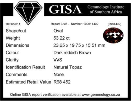 53.22ct Imperial Topaz - VVS - LAB CERTIFED - R1 NO RESERVE !!!!!!!!