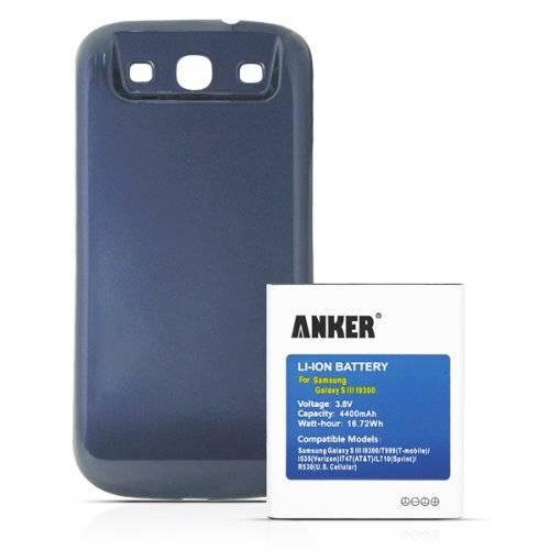 [540 Days Warranty] Anker® 4400mAh Replacement Extended Battery for Samsung Galaxy S3; GT-I9300; T999(T-Mobile); I747(AT&T); I535(Verizon); R530(U.S. Cellular); L710(Sprint); fits EB-L1G6LLU; with NFC/Google Wallet; with Dark Blue Cover