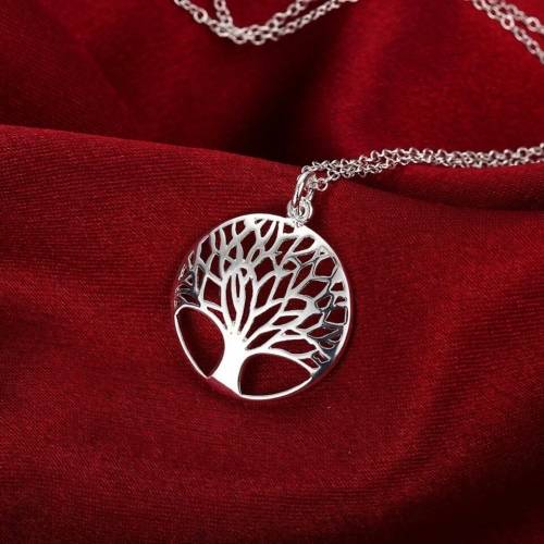 925 Silver Plated Tree of Life Pendant Necklace & Earrings Set