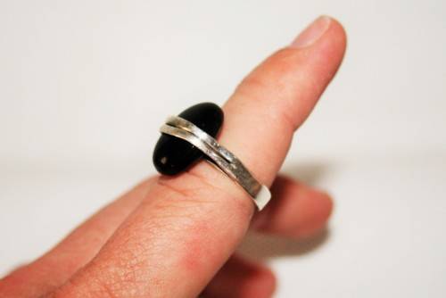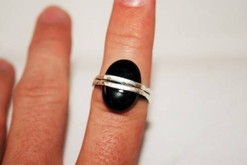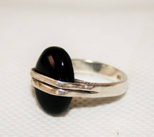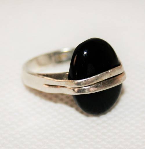 *925 SILVER RING* WOW !! AN UNUSUAL 925 SILVER RING WITH BLACK STONE ! LOOK !!