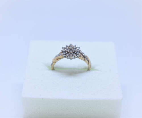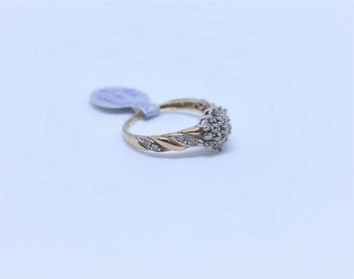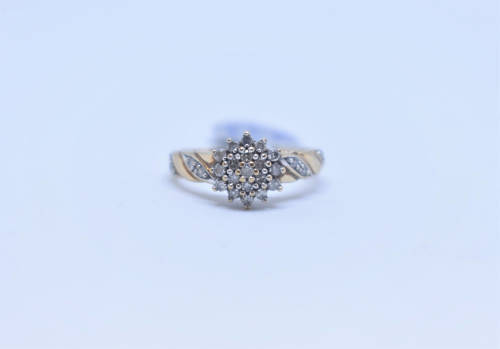 Absolutely gorgeous and unique diamond cluster ring, with a cluster in the center and diamonds on the band