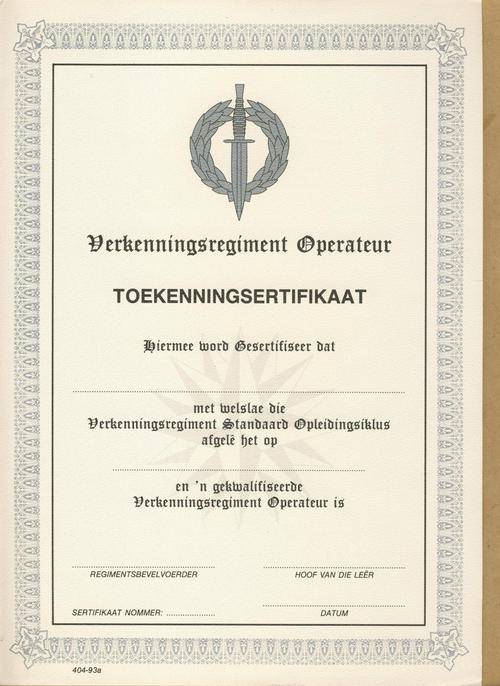 (A1409) SA Special Forces - Recce OPERATOR'S CERTIFICATE - ORIGINAL!!