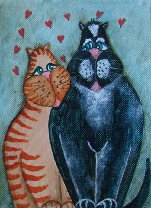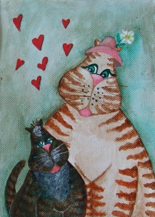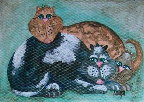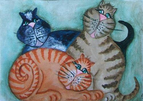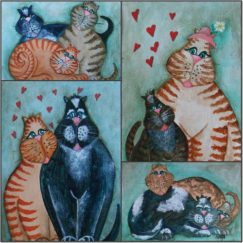 ***Acrylics - The Cat Family (set of 4) - 20 x 15cm each - Sonja Peacock***