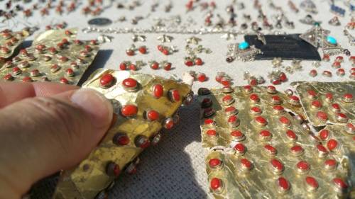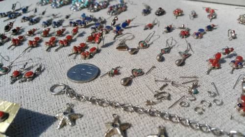Items are generally mismatched & some broken pieces but there are many paired items that are still ready for resale or for personal wearing. Items include garnets & other semi-precious stones.