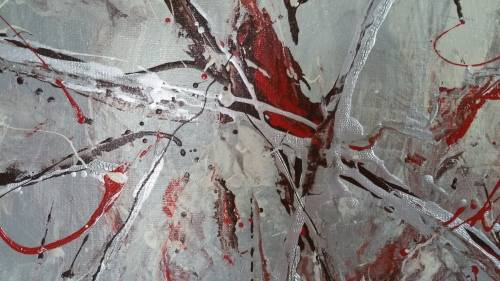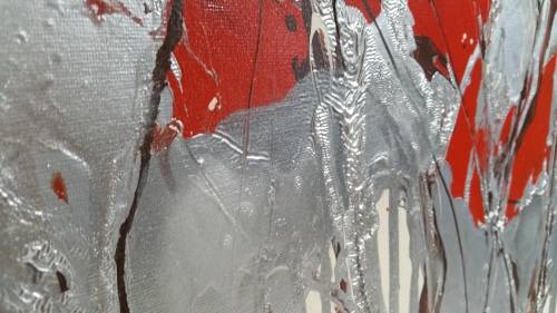 "Inspired by the miracle of dreaming possible that which cannot be expected to be possible but exists because of the pure power of believing. Wonder & awe (wow) like feelings of intense cold calm & exciting crackling hot energy are present. The colours are striking with strong modern blends silver whites & reds. For art lovers who appreciate works of art of strong expression with colour & movement. Moderately detailed at close range & fairly blending at a distance allows for variety of hanging spaces in rooms where people will have shorter viewing time & still be able to appreciate this personal viewing experience. Enjoy." - A.Kuhnel