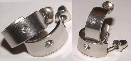 *** ALLERGY FREE!! ***SILVER ALLOY HOOP EARRINGS WITH RHINESTONE!