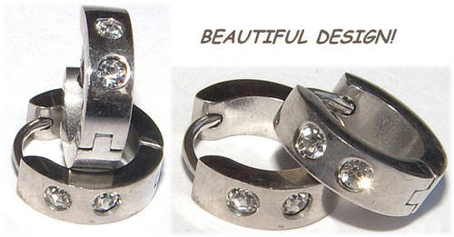 *** ALLERGY FREE!! ***STAINLESS STEEL HOOP EARRINGS WITH SIMULATED DIAMONDS!