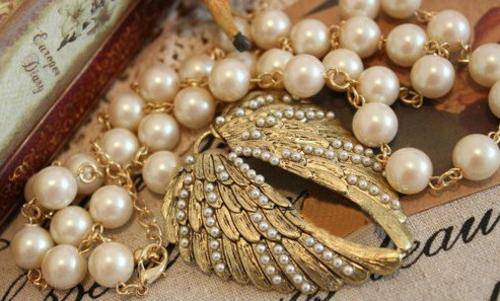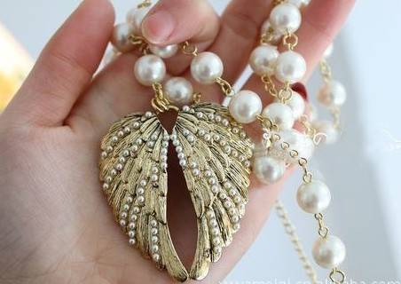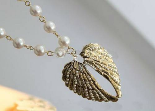 ***ANGEL WING FAUX PEARL LACE - NECKLACE ***