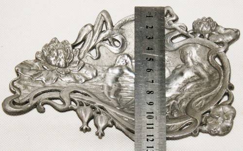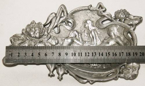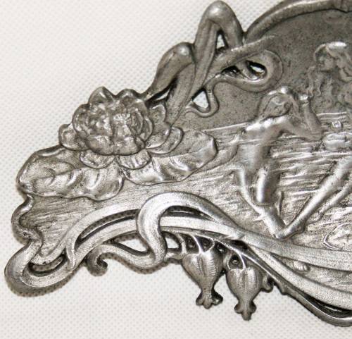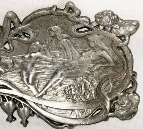 *ART NOUVEAU* BEAUTIFUL PEWTER ART NOUVEAU CARD TRAY WITH MAIDENS - MARKED & NUMBERED