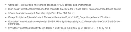 It is designed to be used with camcorders, SLR cameras, and portable audio receivers.