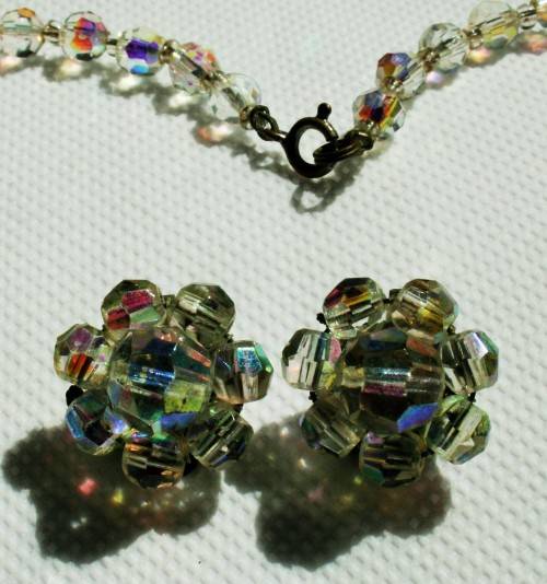 *AURORA CRYSTAL* WOW A BEAUTIFUL VINTAGE AURORA CRYSTAL NECKLACE WITH MATCHING EARINGS !