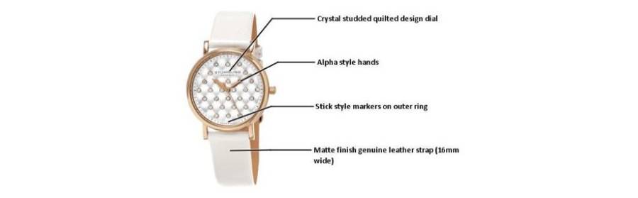 Stuhrling Original Women's Symphony Quilted Dial White Leather Watch.
