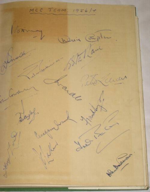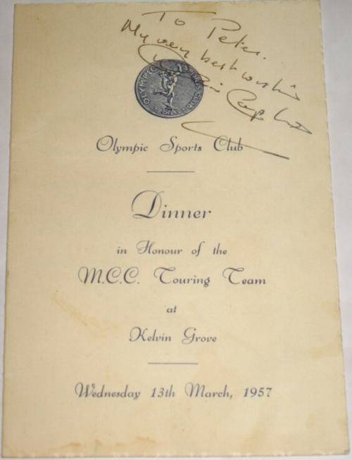 Signed by Peter May and the MCC Team of 1956/1957. Plus Official Dinner Card & Menu.