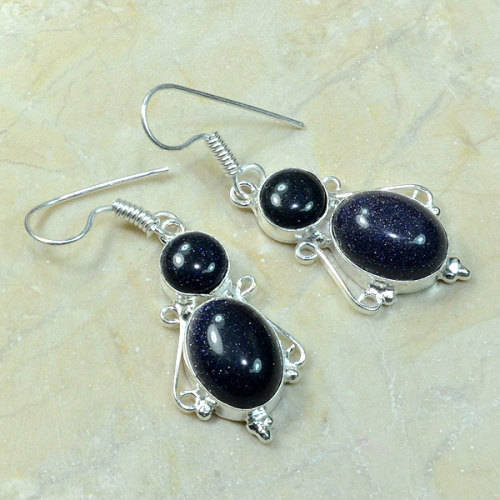 NAVY BLUE GLITTERY SUN SITARA EARRINGS !