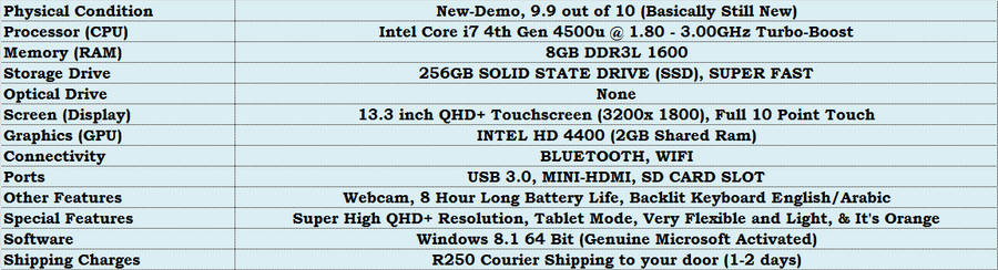 *Awesome*. Lenovo Yoga 2 Pro QHD+ 3200x1800 Touch 4th Gen Core i7 **R25,000**, 256GB SSD, 8GB Ram