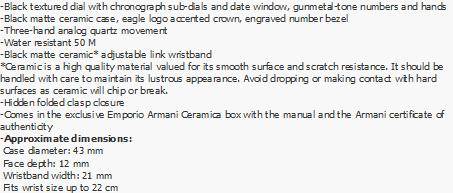 **AWESOME WATCH**Emporio Armani Matt Black Chrono Ceramic **R5999**