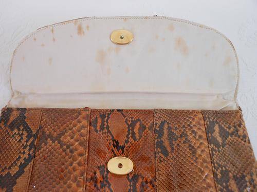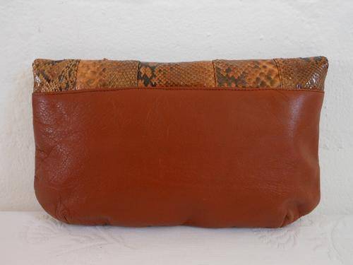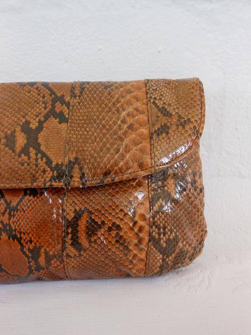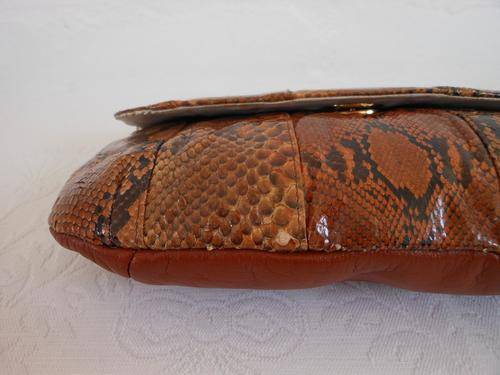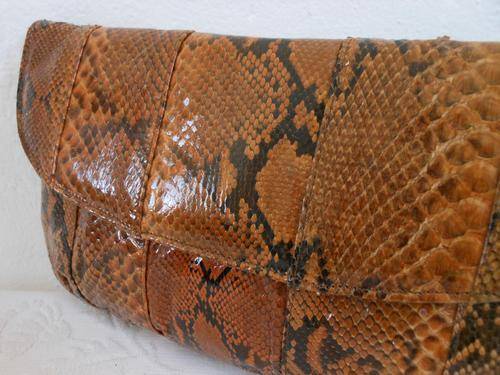 *BALLY* GENUINE SNAKE SKIN LEATHER DESIGNER VINTAGE BROWN TAN CLUTCH HANDBAG BAG